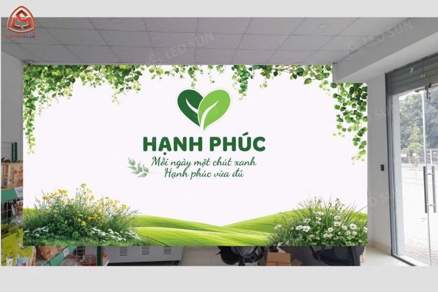Cửa hàng thực phẩm chay Hạnh Phúc mong muốn xây dựng hình ảnh thân thiện và dễ nhận diện đối với khách hàng trong khu vực. Bảng hiệu mặt tiền đóng vai trò quan trọng trong việc thu hút sự chú ý của người đi đường và truyền tải thông điệp thương hiệu.