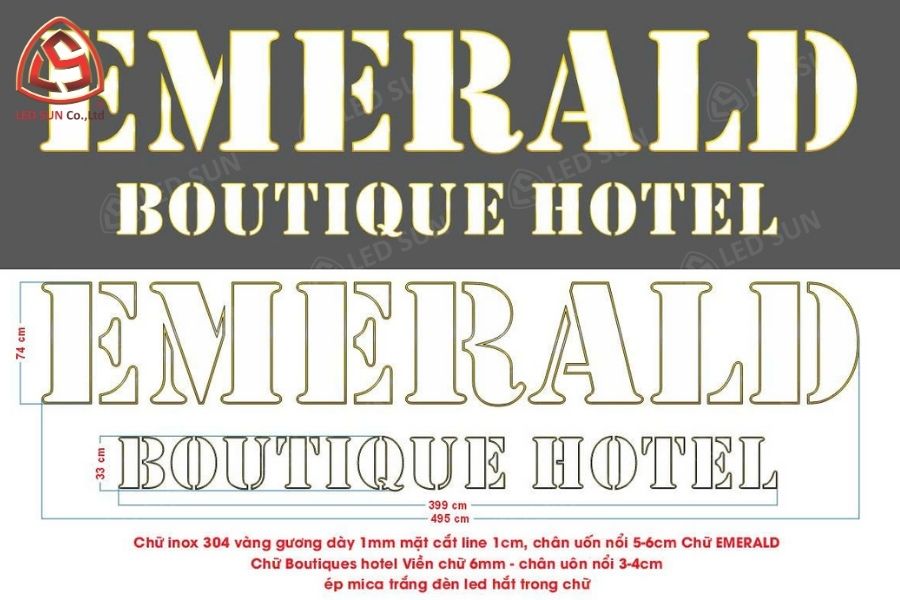 Bộ chữ Emerald Boutique Hotel – mặt tiền tầng cao