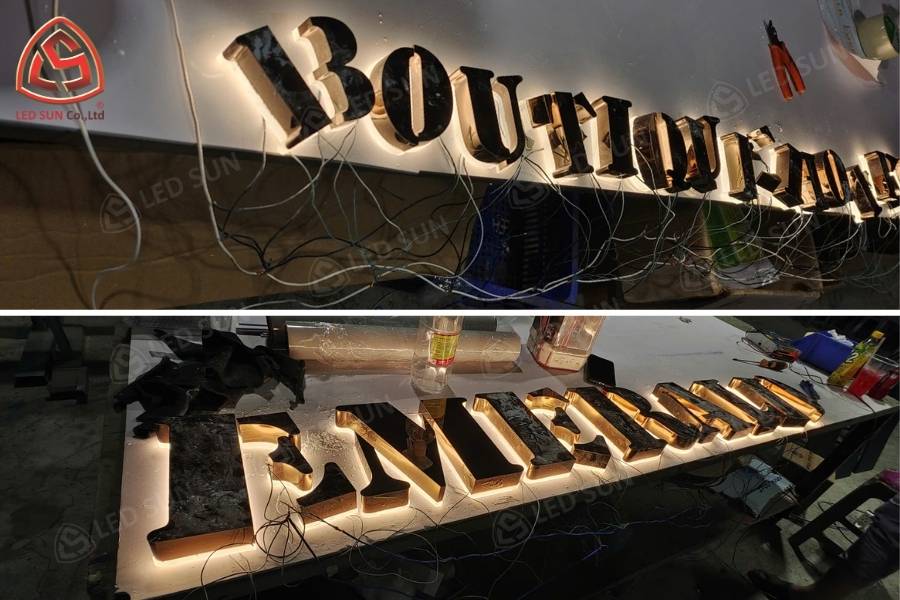 Chiếu sáng bằng đèn LED hắt sáng bên trong chữ.