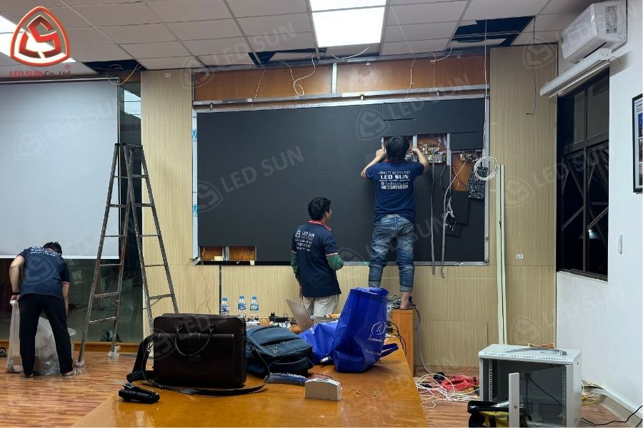 Bàn giao hệ thống hoàn chỉnh, hướng dẫn sử dụng – kiểm soát độ sáng – lịch bảo trì để màn hình LED P1.25 vận hành ổn định 24/7 theo đúng tiêu chuẩn triển khai của Led Sun.