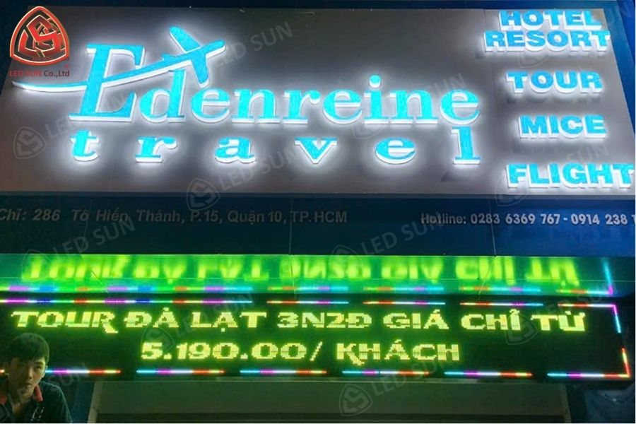 | Cấu hình LED | LED đơn sắc (3 màu cơ bản) | Tối ưu cho logo – chữ – màu thương hiệu |