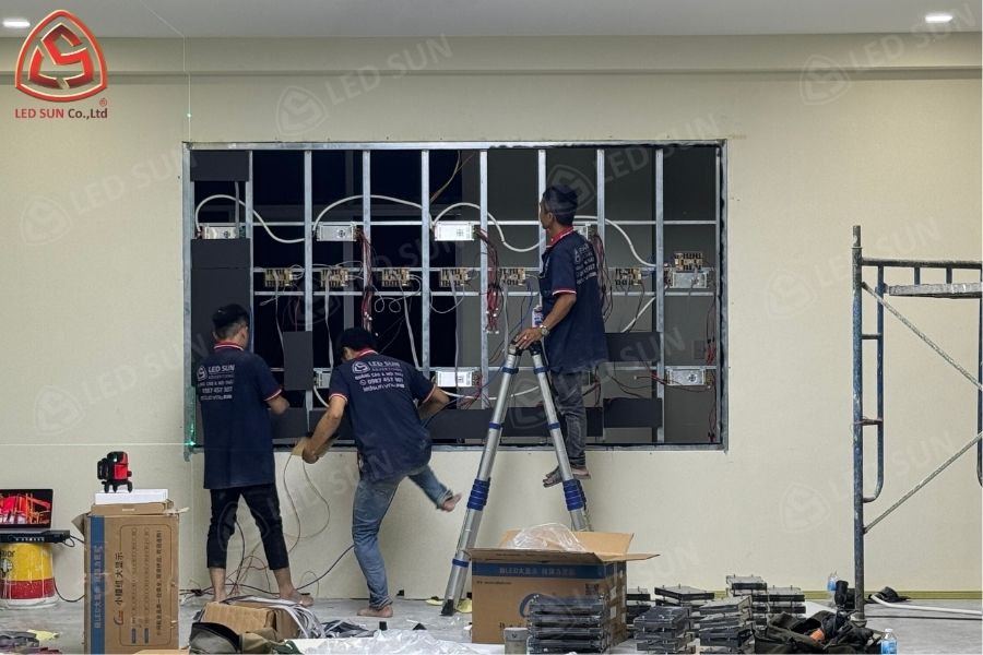 Đối với các dòng màn hình LED trong nhà P2 có mật độ điểm ảnh cao, quy trình lắp đặt cần được kiểm soát chặt chẽ từ khâu khảo sát đến hiệu chỉnh hình ảnh. Led Sun triển khai theo quy trình tiêu chuẩn, tập trung vào độ chính xác kỹ thuật, thẩm mỹ hoàn thiện và khả năng vận hành ổn định lâu dài cho các không gian cao cấp.